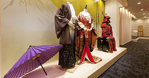 しっとりとした白無垢や華々しい色打掛、めずらしいオーガンジーの和装、 今注目の鎧兜など、和装だけを取り揃えたフロア。