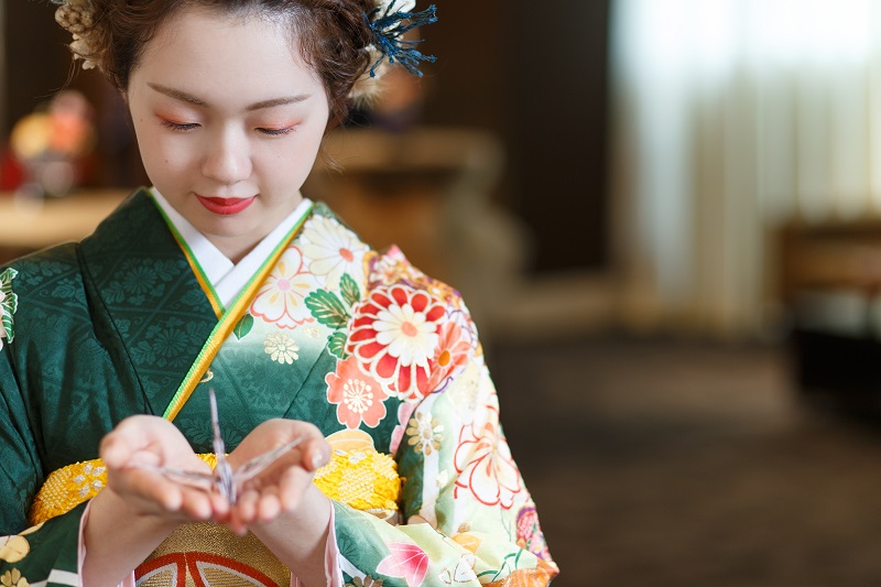 熨斗目や色とりどりの四季のお花が華やかに彩ってくれます。