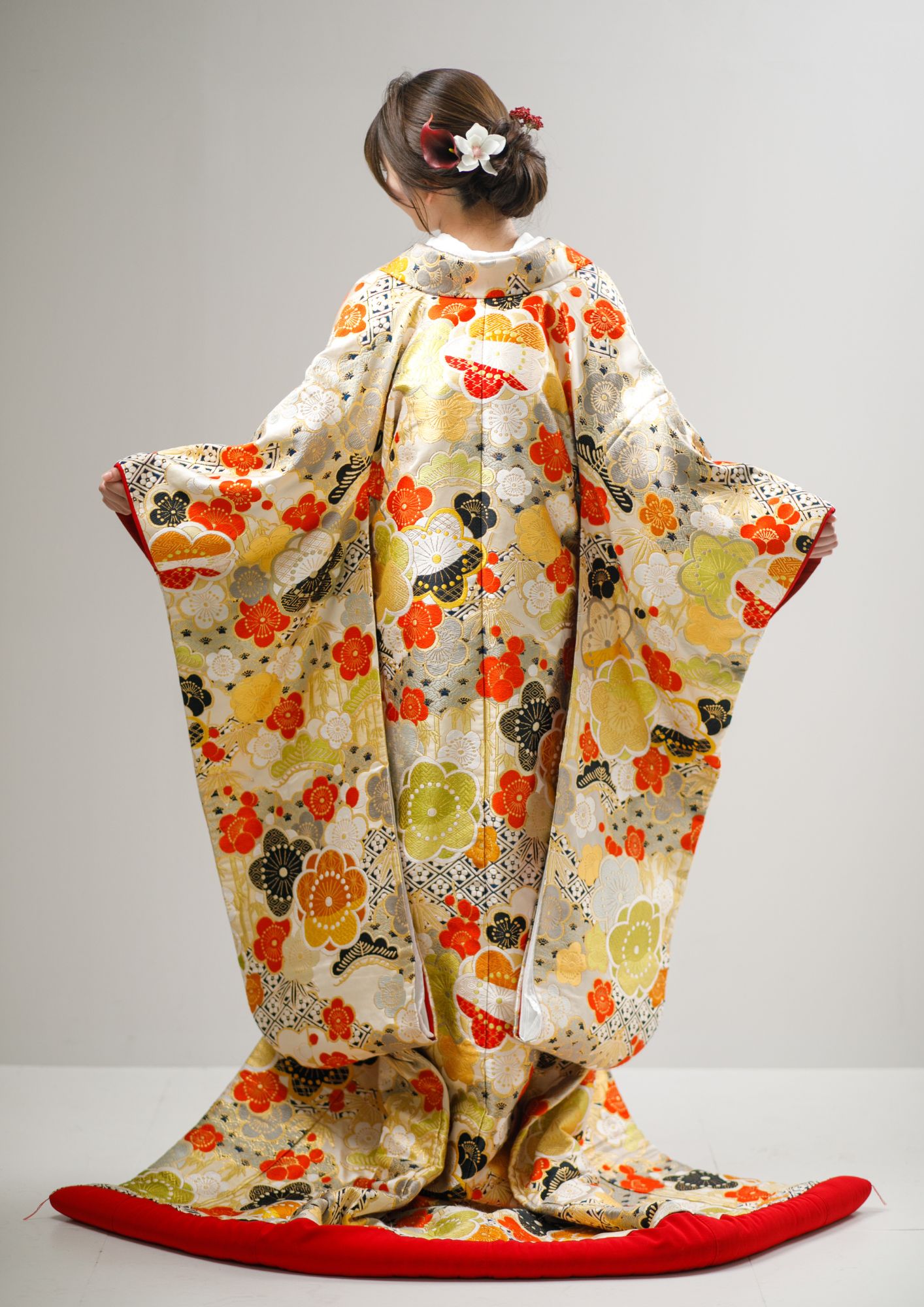 四季を彩る色とりどりの花々が咲き誇る色打掛。