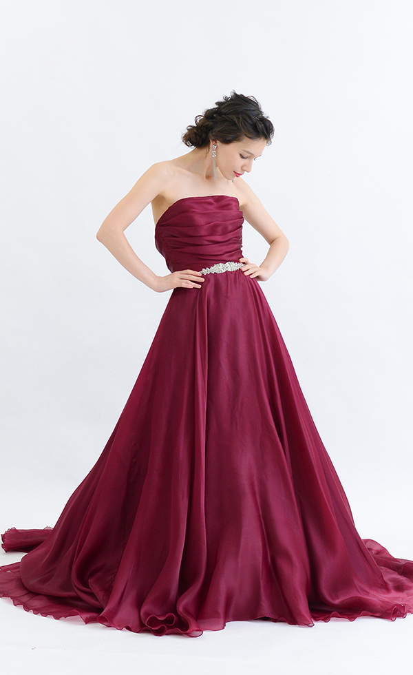 上質なシルクオーガンジーの美しさが引き立つ艶やかなカラードレス。