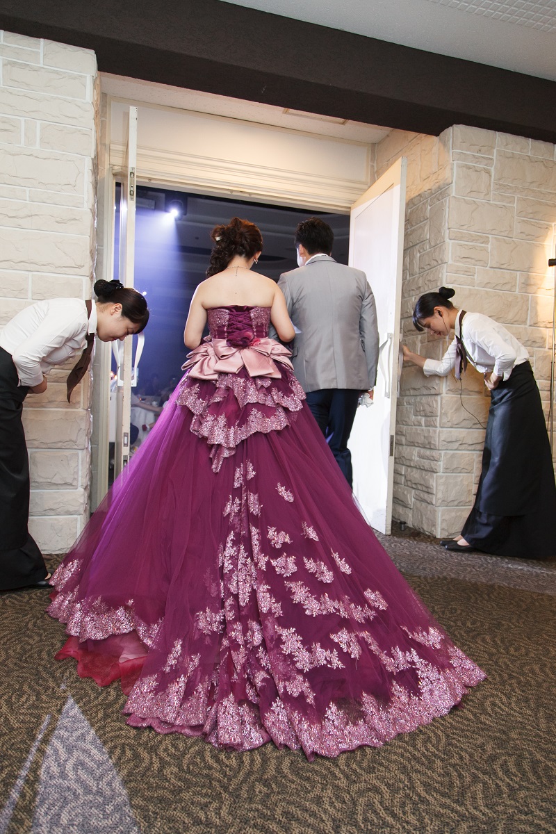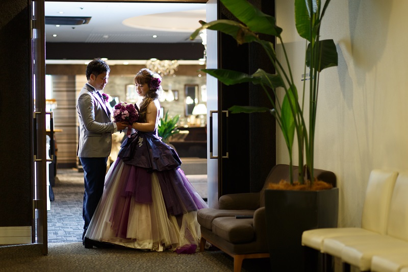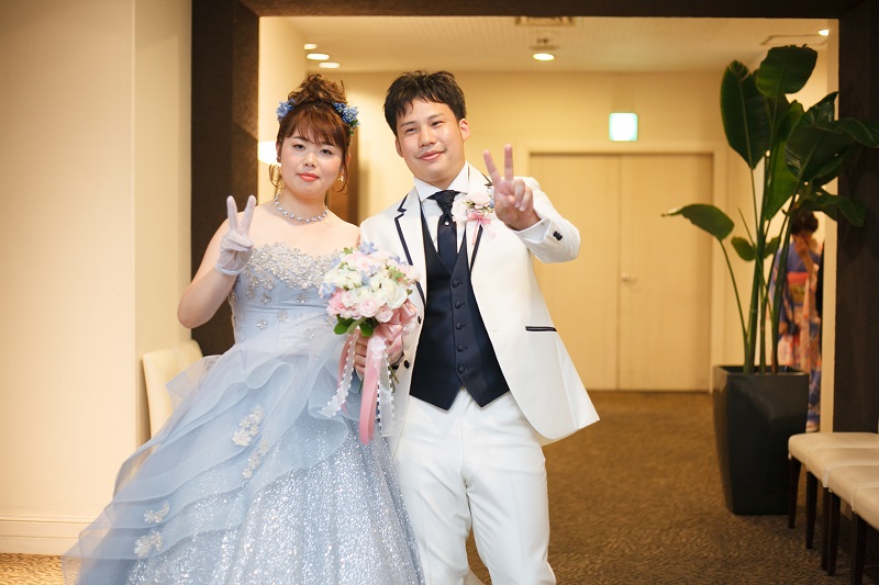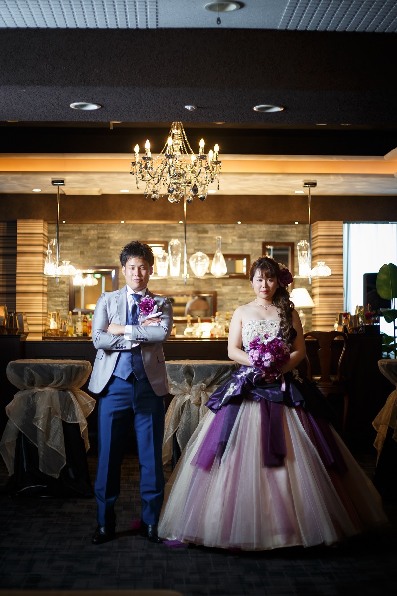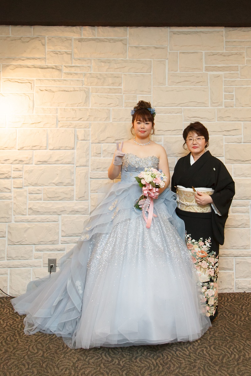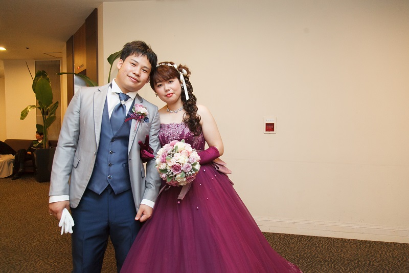 結婚式当日はパープルと水色の色ドレスを着ました♬
