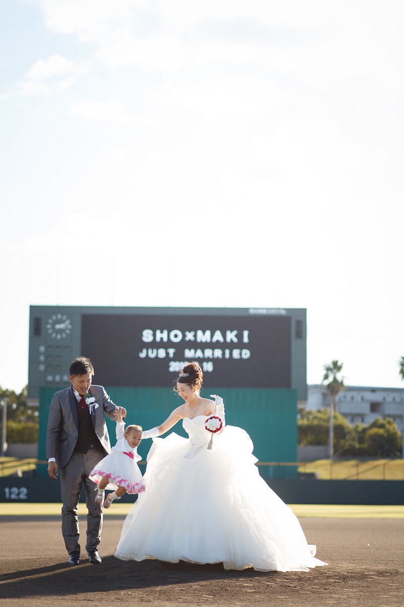 前撮りでは、野球スタジアムに行き撮影をしました