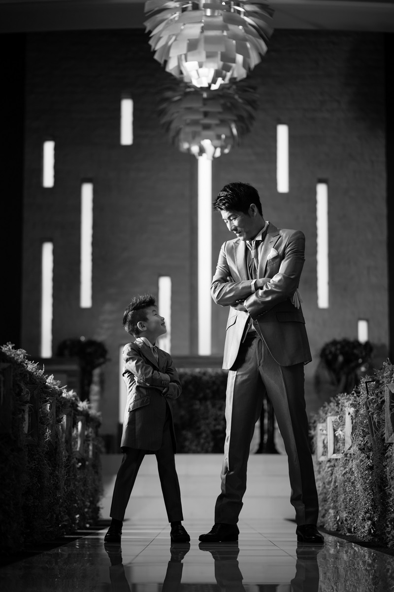 タキシードはお子様と同じお色味にし、お揃いに。