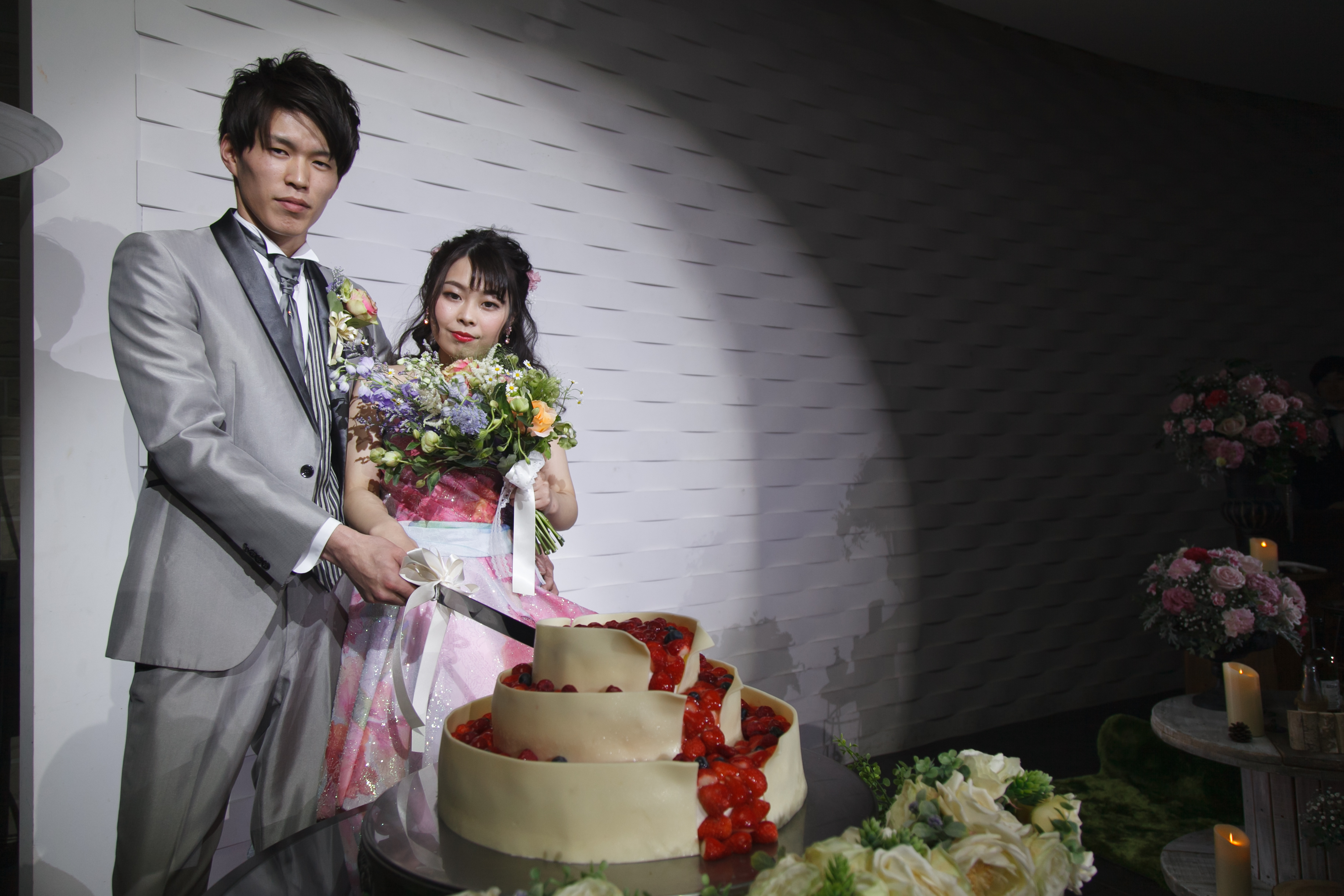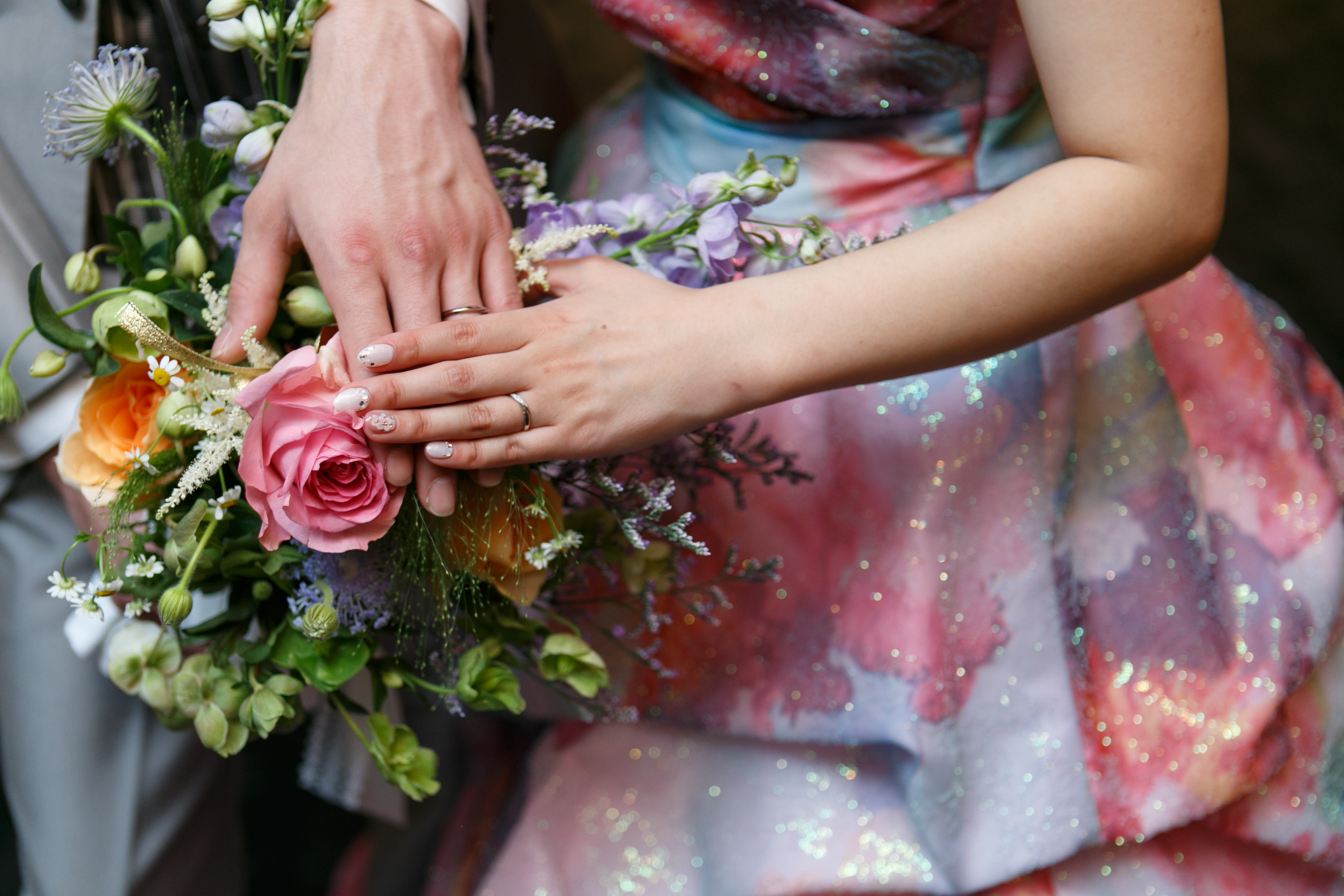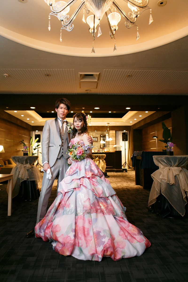 ピンクや水色、紫のお色味をマーブル状でデザインされたカラードレス♡