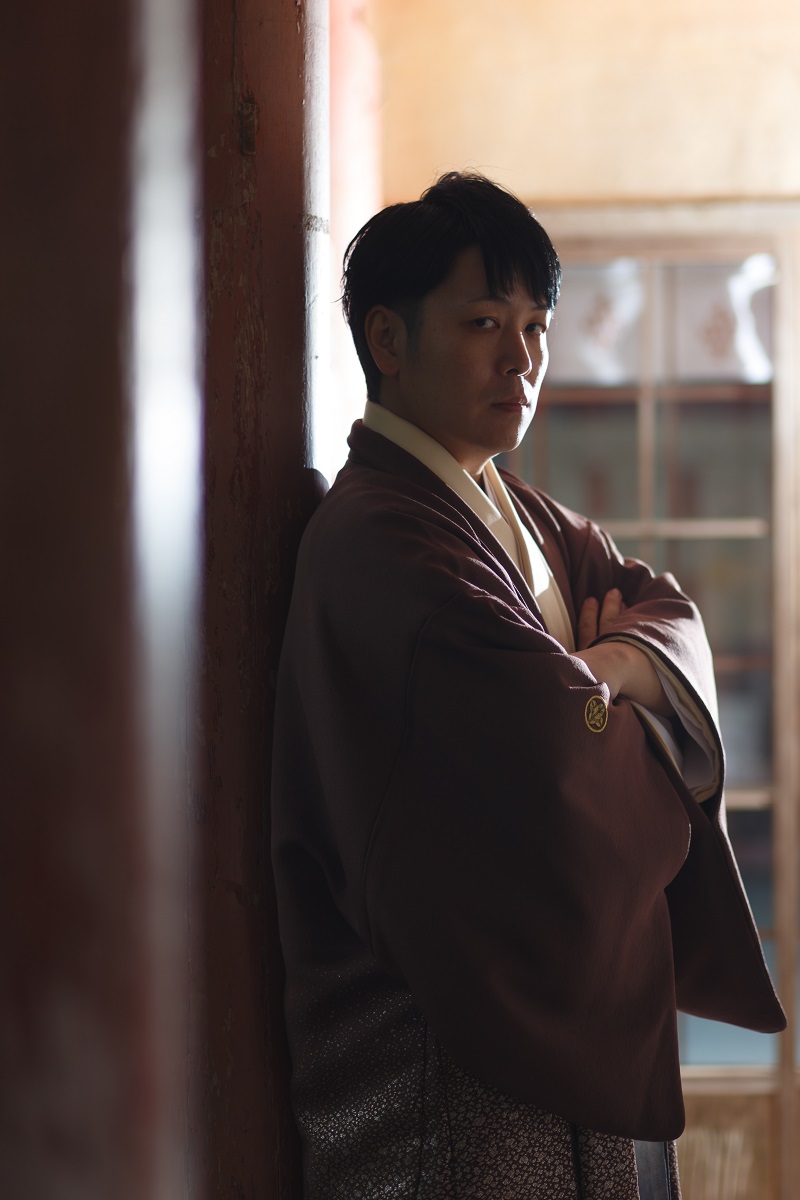 茶色の紋付は、和モダンでおしゃれな一着。