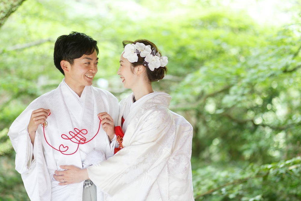 白無垢にポイントで赤を入れると