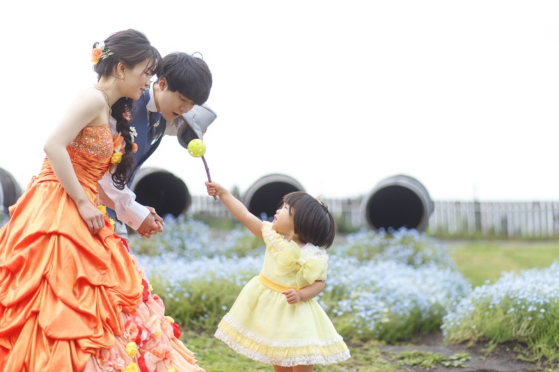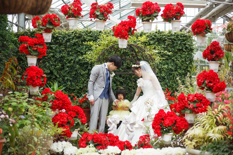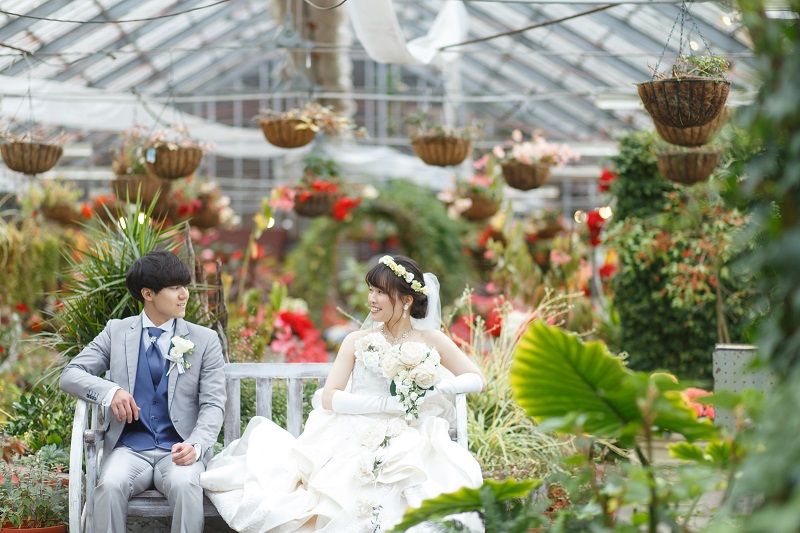 カラードレスとウェディングドレス、どちらも花公園で撮影でした♡