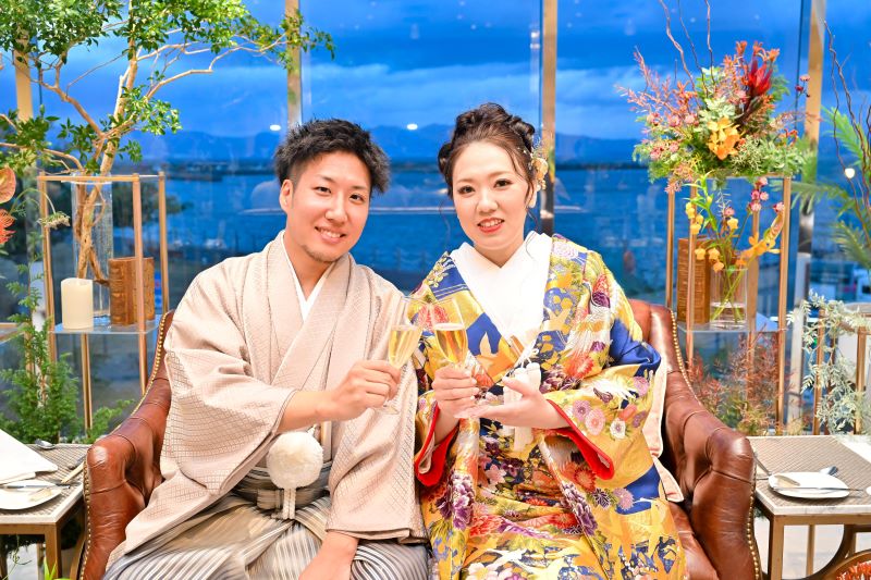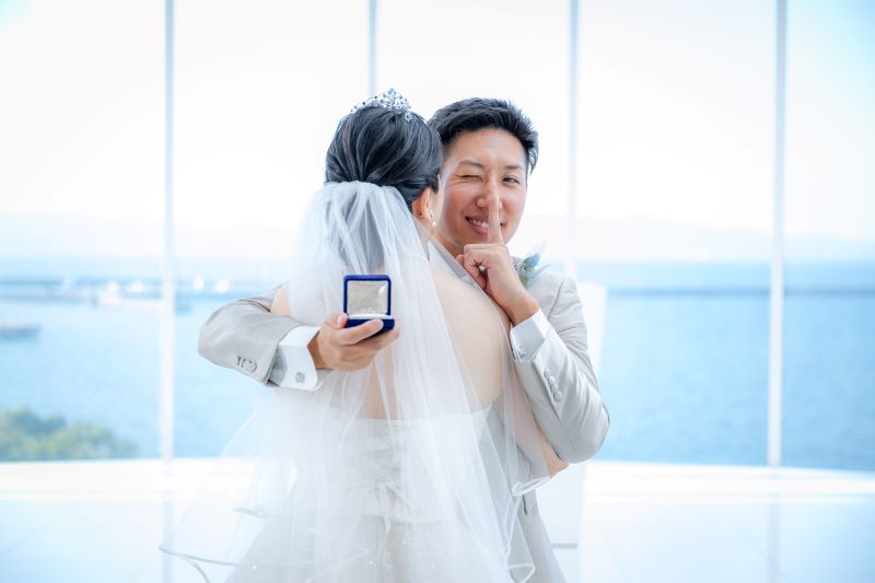 今回は、別府湾を背景に挙式・披露宴が出来るクラウンベールロータスベイでお式を挙げられたお2人のご紹介です♡