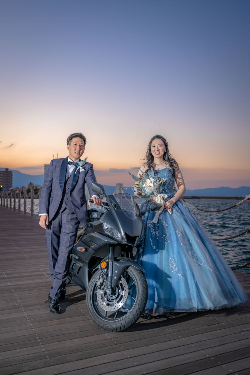 前撮りでは、愛車のバイクと一緒に撮影をしました☆