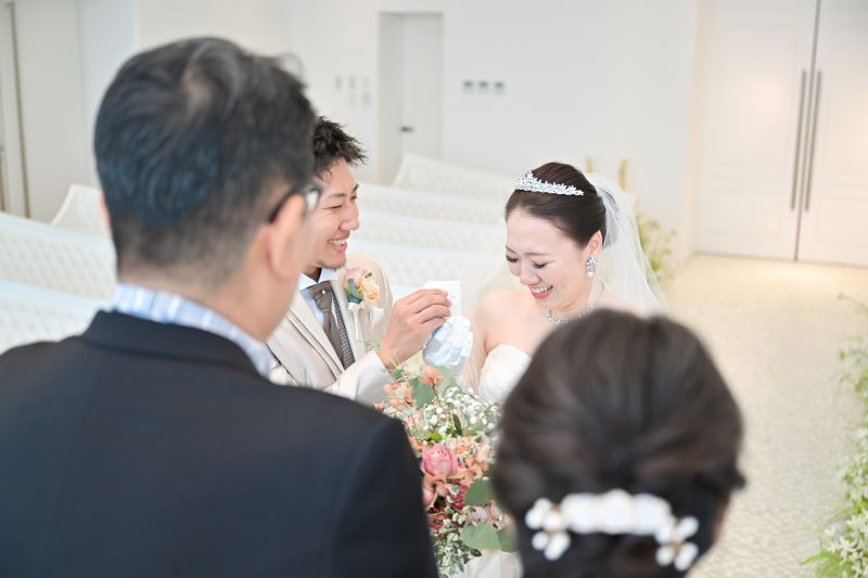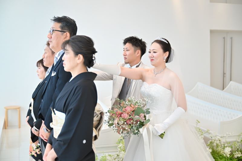こちらは挙式当日に、ご両家の親御様とファーストミートをしているお写真です